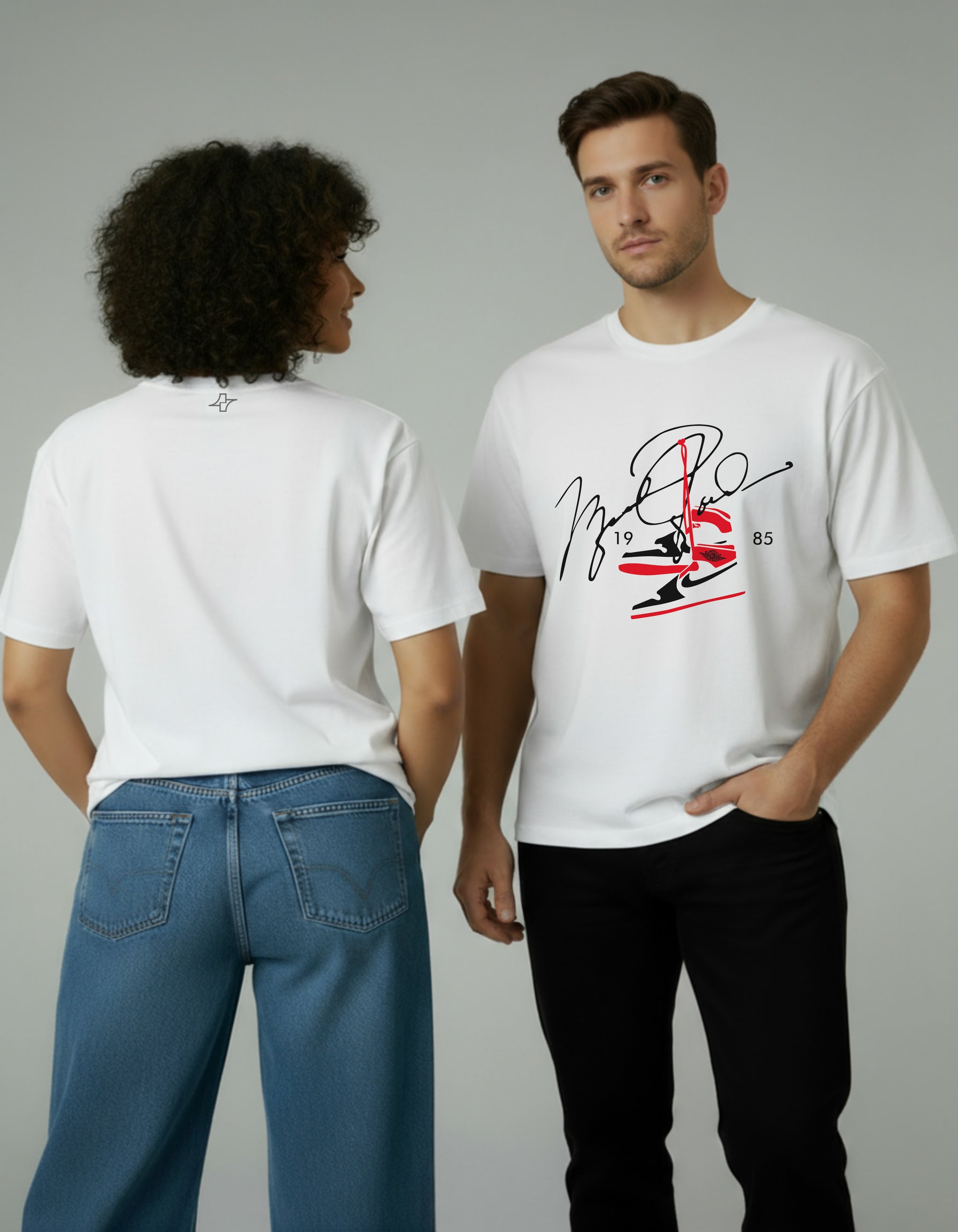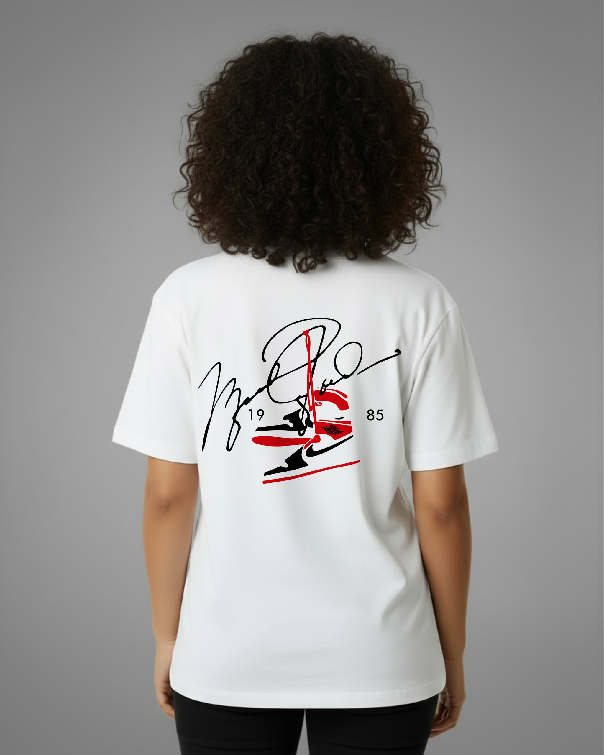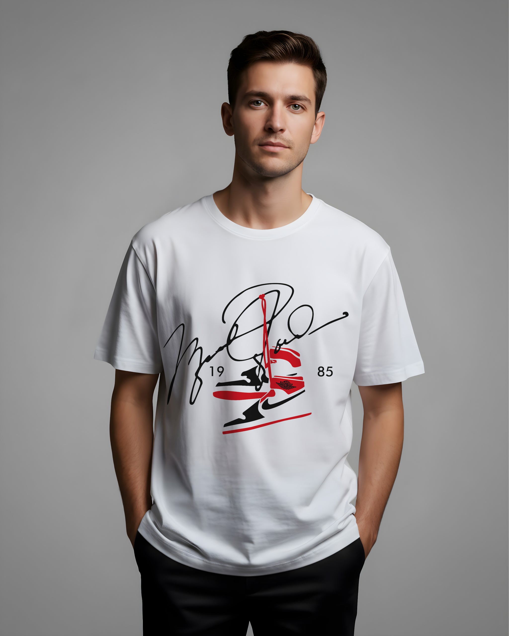 The “1985 Legacy” Tee pays tribute to the year that changed sneaker and basketball culture forever. Featuring a minimalist line-art sneaker graphic with signature-inspired detail, this tee embodies heritage, passion, and timeless style.