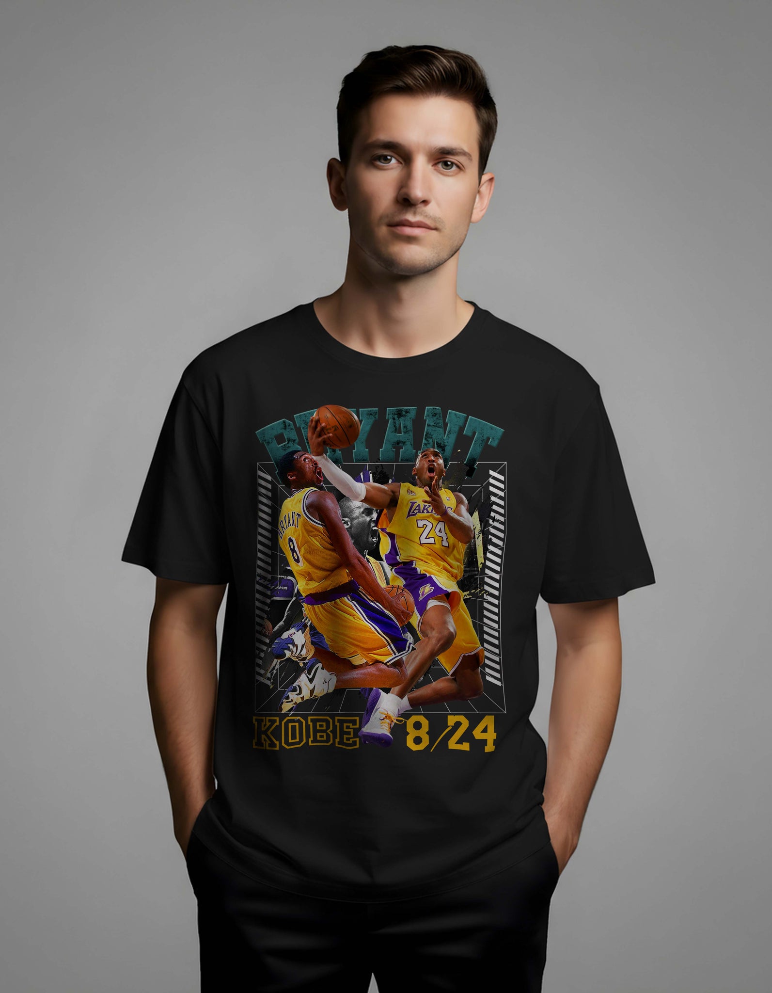 Celebrate the evolution of greatness with the Kobe Bryant “8/24 Legacy” Graphic Tee. Featuring a powerful dual-era design that captures Kobe in both his #8 and #24 jerseys, this tee honors the full journey of the Black Mamba — from young phenom to all-time legend.