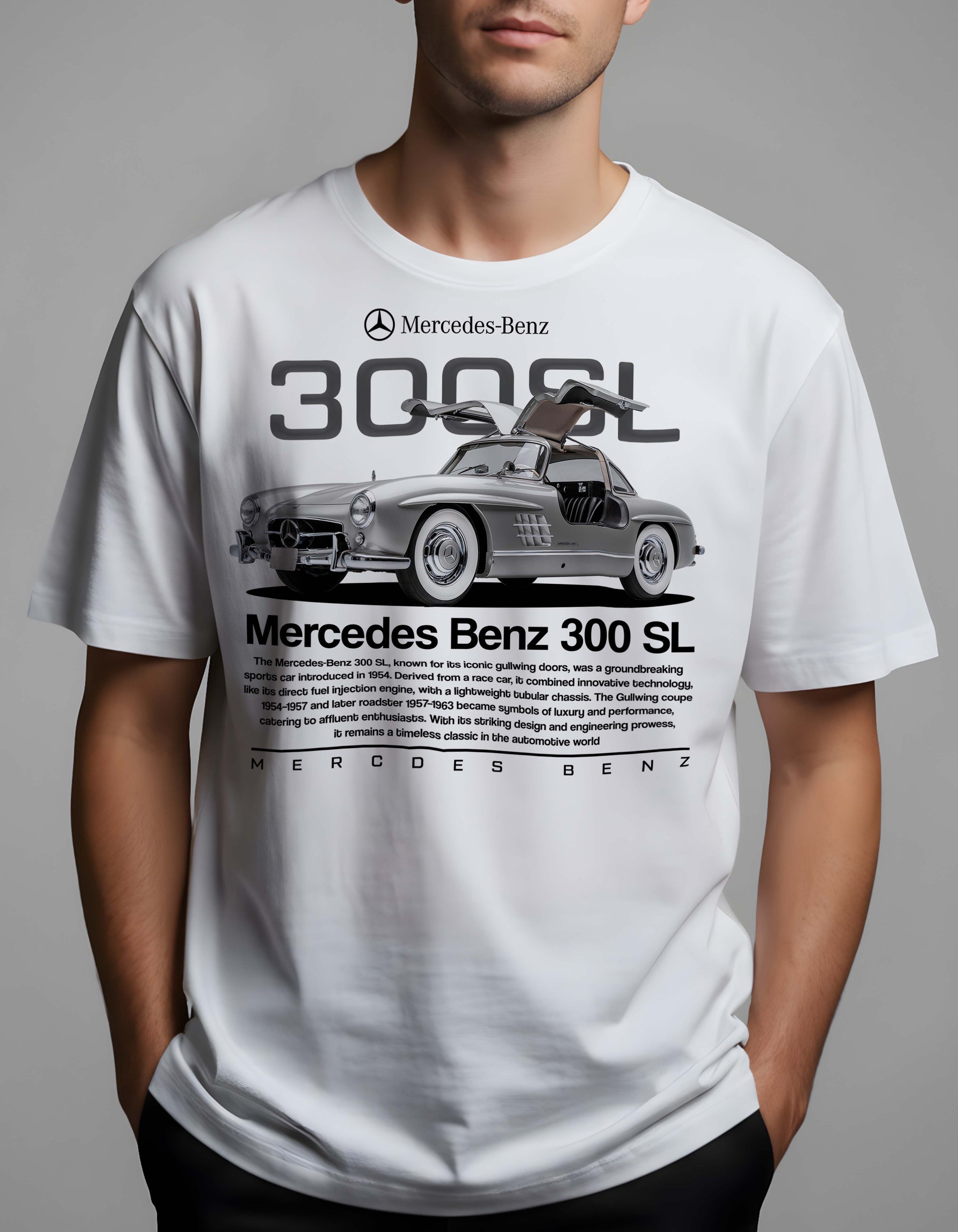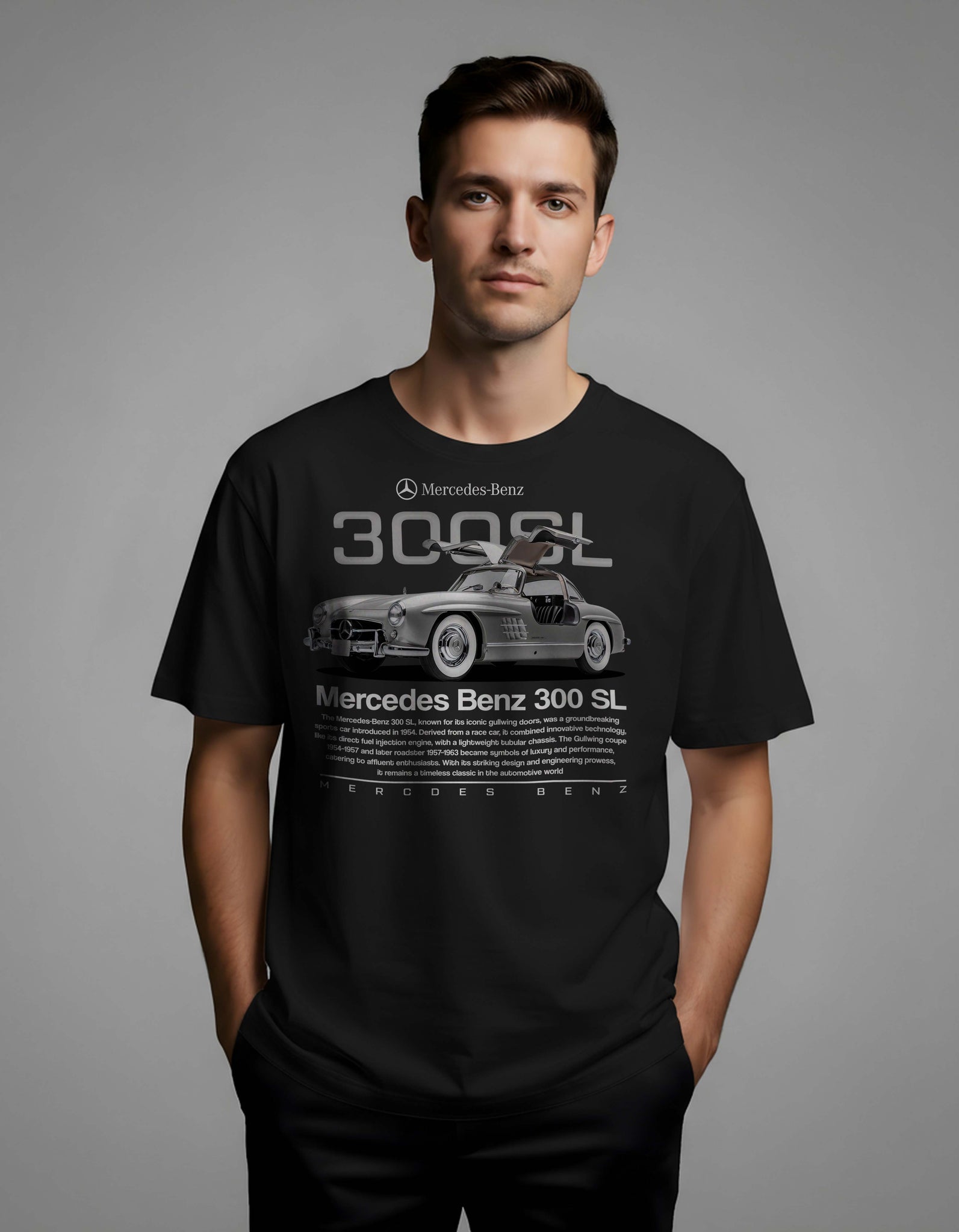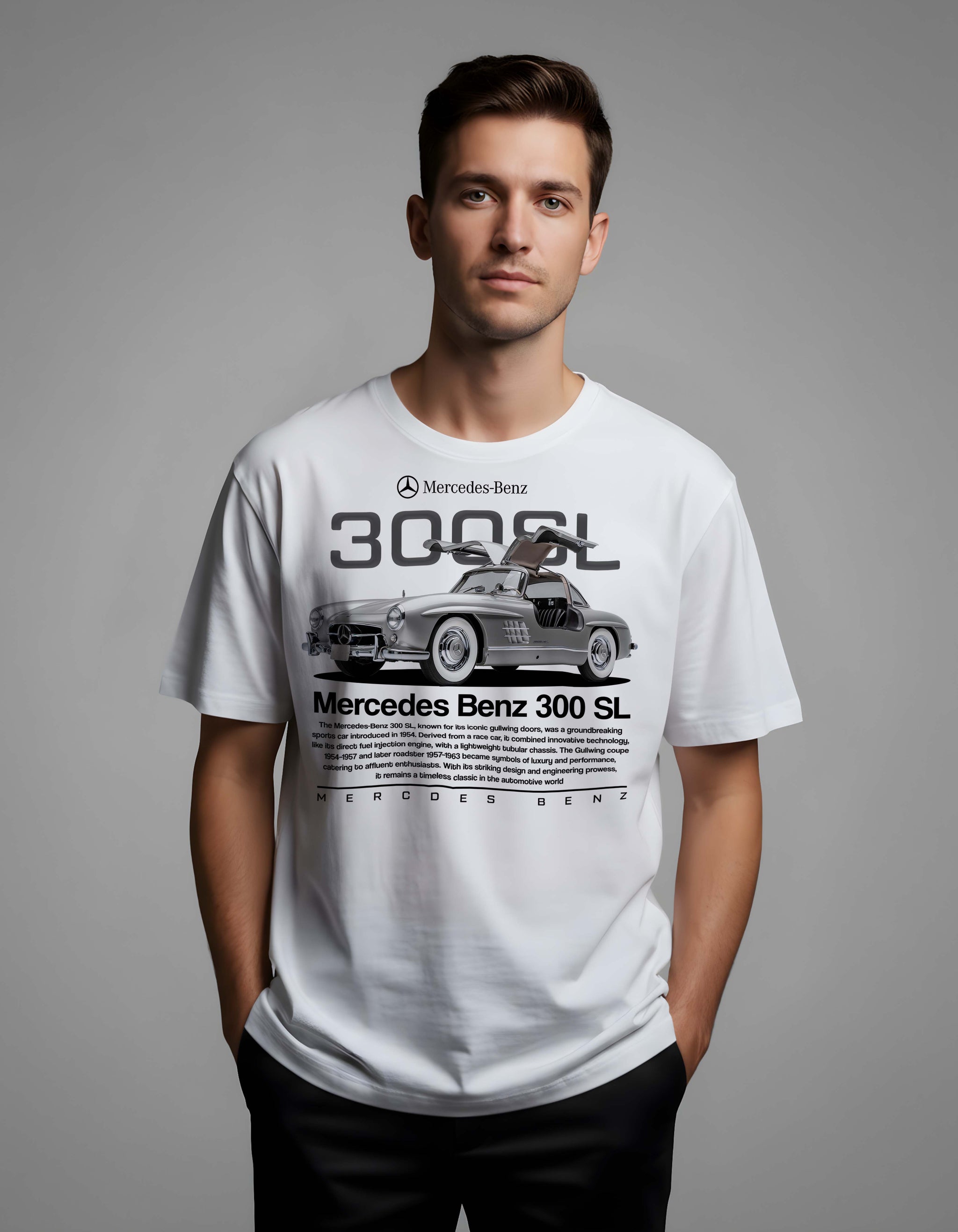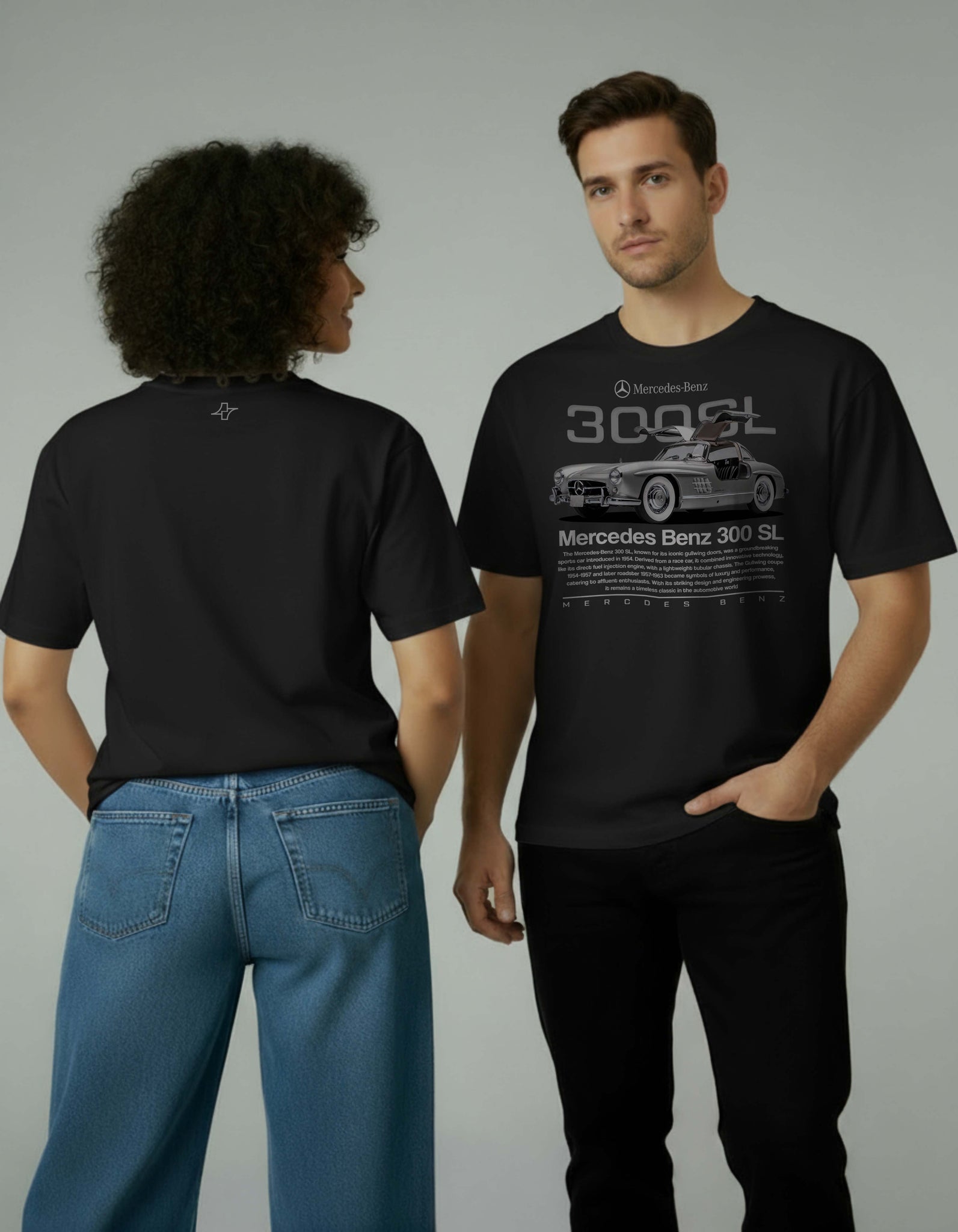 The “300SL – The Legend Returns” Tee pays homage to the Mercedes-Benz 300SL Gullwing — an icon of 1950s design and innovation. With its unmistakable silhouette and upward-opening doors, the 300SL remains a symbol of elegance and performance in automotive history.