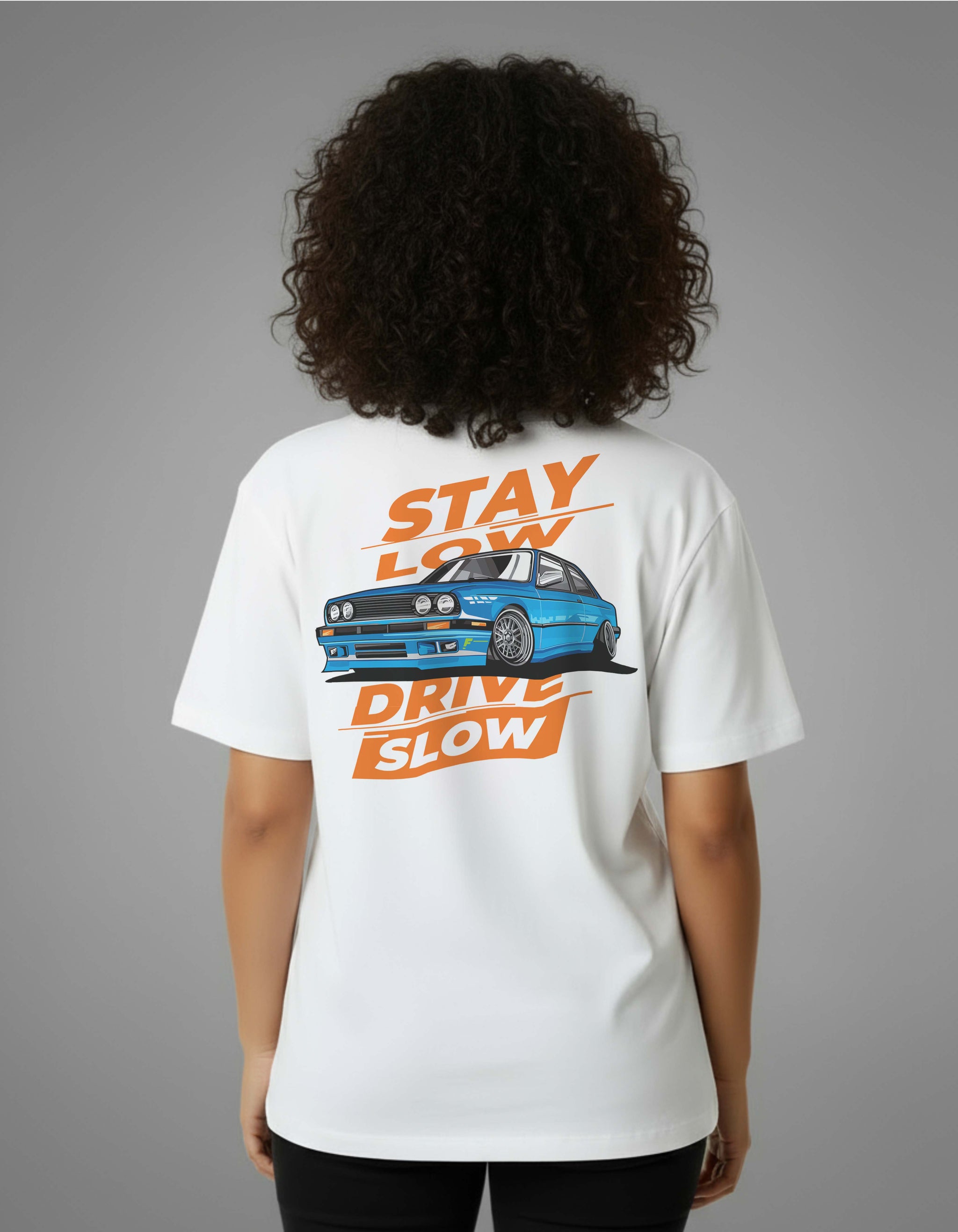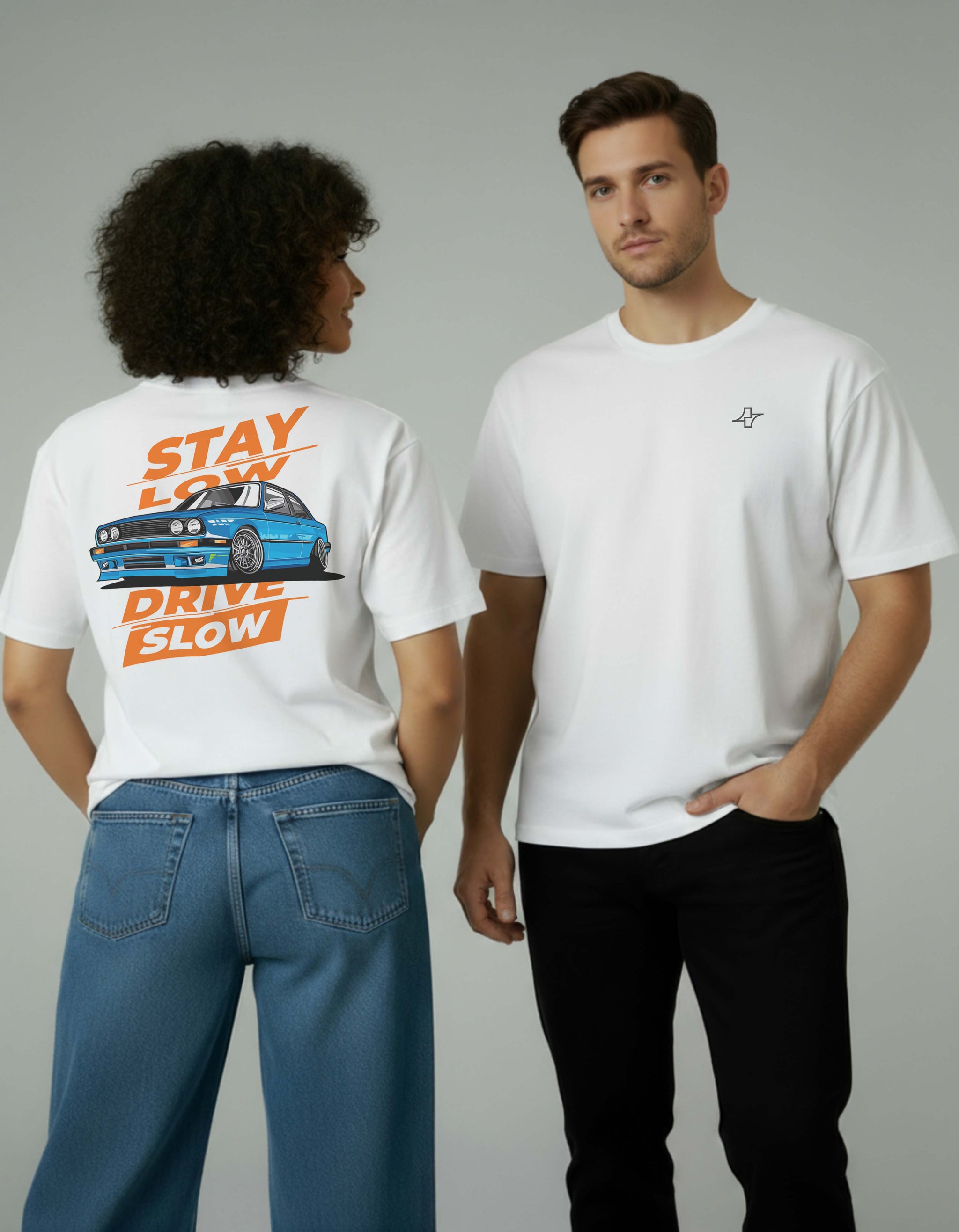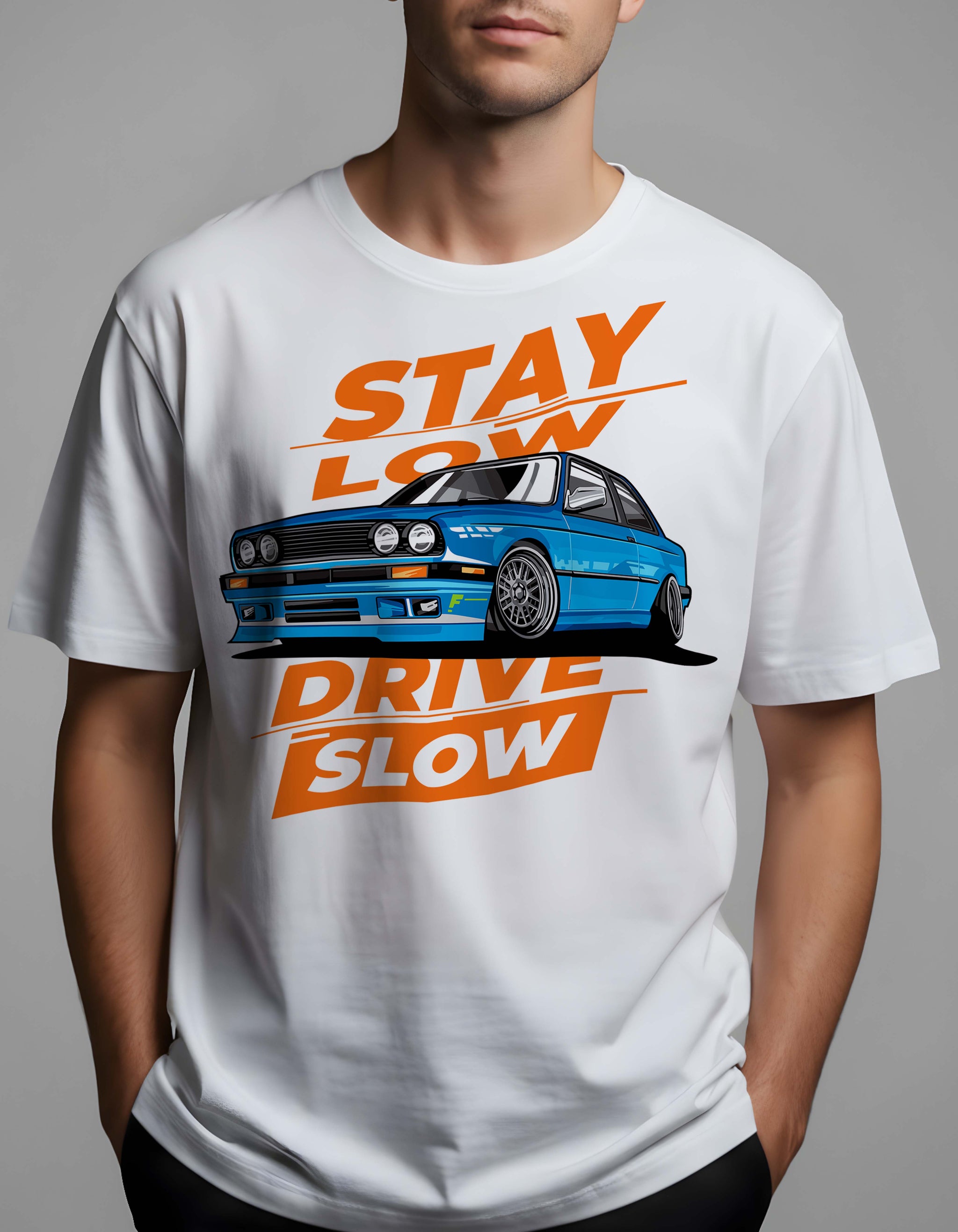 Cruise in style with the “Stay Low Drive Slow” Tee — built for car enthusiasts and street culture lovers. The bold graphic design captures the essence of lowrider attitude and clean drive energy.